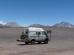 Sehr entspannt machten wir uns an den Aufstieg zum Paso de San Francisco, einer der höchsten, befahrbaren Pässe zwischen Chile und Argentinien. Um uns an die Höhe zu gewöhnen, legten wir einen Zwischenstopp für die Nacht auf ca. 3.200m ein, bevor es am nächsten Morgen auf sagenhafte 4.771m nach oben ging. Eine Belastungsprobe für Mensch und Maschine. Beim Iveco qualmte der Motor recht heftig und bei mir stellten sich leichte Kopfschmerzen ein.